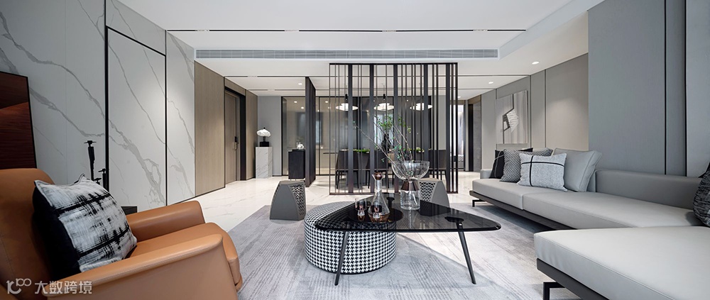 延续建筑外立面“超纤细(bezel-less)”的质感元素,为空间中的每根线、每个面进行合理地绘制和呈现,或错落,或穿插,而不同材质的纹理和色彩相互融合且对比,增强了空间画面的层次感。