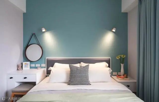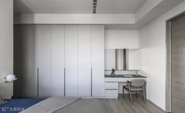 之前我们说过了,梳妆台放在方头可以当做床头柜用,真的节省很多空间。如果卧室空间不是很足的话,可以考虑这样的设计,可以充分利用空间。而且和床头柜结合的梳妆台,如果是找师傅手打的话,可以根据卧室实际空间来调节,还是很不错的。