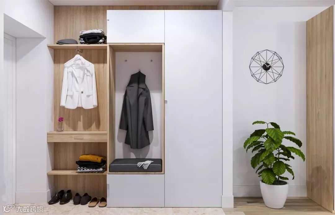 门厅是连接室内与室外的桥梁,在门厅处打造一个高柜,方便存放鞋子、外套、钥匙、手提包等,这样可以把杂物统统隐藏起来,还门厅一个清爽环境。
