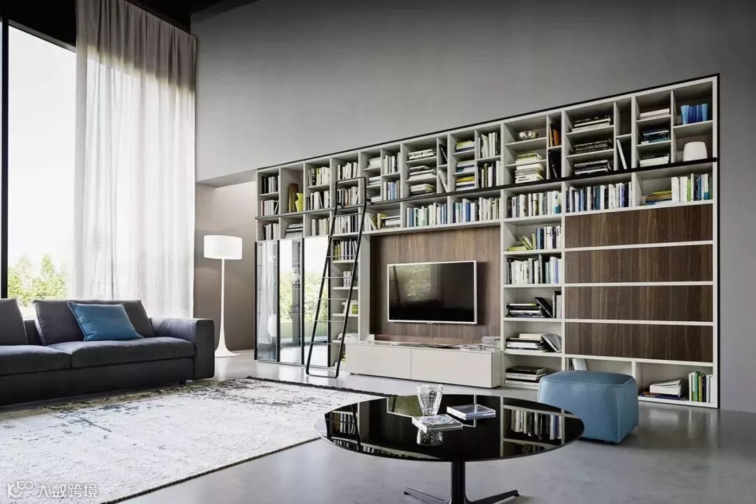 客厅里的遥控器、小家电、玩具、书籍、零食等各类杂物,如果没有收纳好,整个空间就会显得十分凌乱。那不妨把背景墙充分利用起来,做个满墙的电视柜,不仅大气美观,还能增加充分的收纳空间。