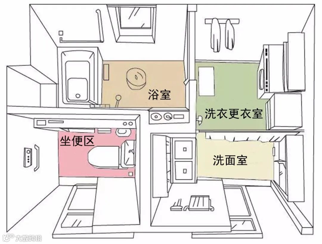 所谓功能分离,就是卫生间的布局中
