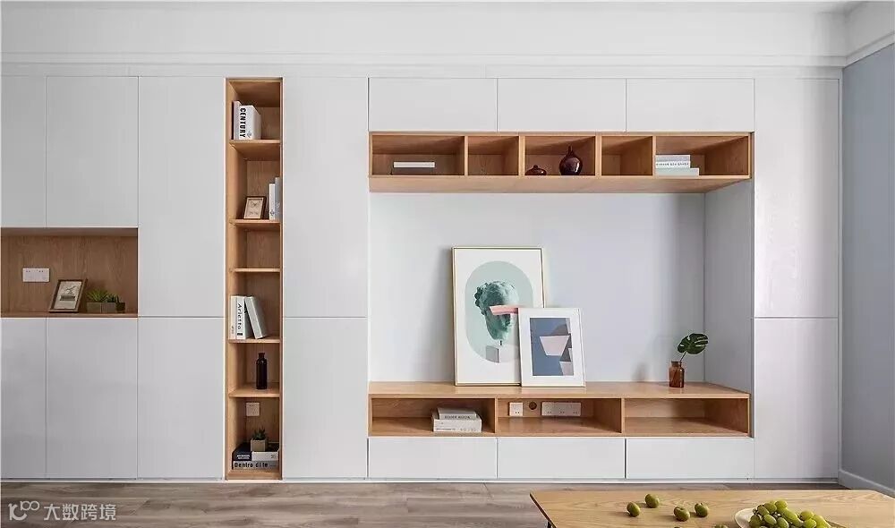 收纳型背景墙的很大优势,就在于可以将美观与实用融为一体,既满足了储物展示的需求,又可以发挥一定的装饰效果,让家里彰显不一样的美感。