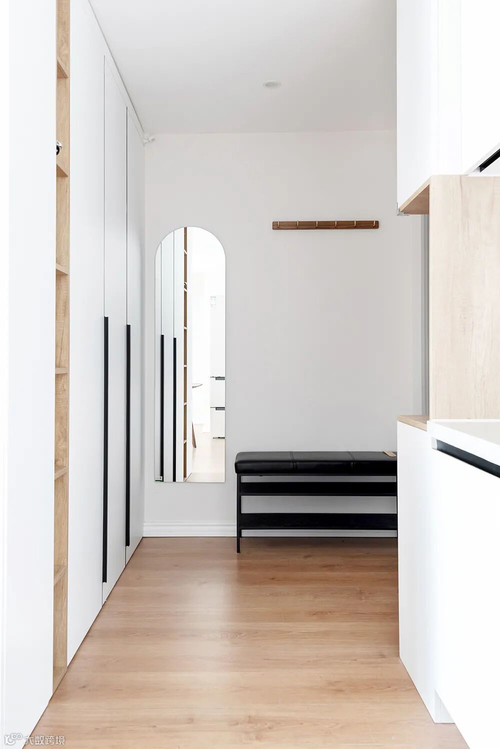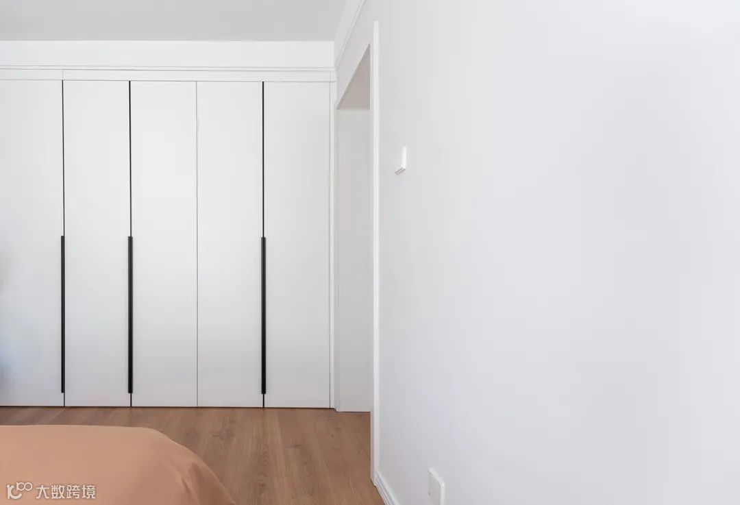 次卧兼备睡眠区与书房,临时办公、游戏都比较方便。定制柜采用白色木色相结合,使整体空间色彩统一。