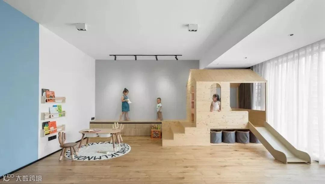 家里有小宝宝0.5-7岁之间的家庭,为了更好的陪伴孩子,可以选择不要沙发,腾出更多空间来打造一个儿童游戏区。