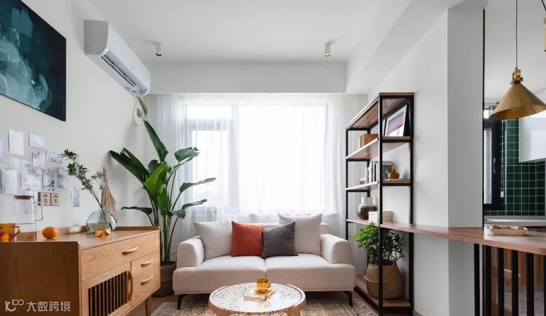 客厅放置茶几的主要作用是收纳,不想茶几占据家里的半壁江山,又想要小物件有地方收纳,可以用边几代替茶几,或者在