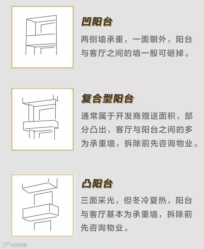 阳台分为凸阳台、凹阳台、复合型阳台,其中凹阳台是可以直接拆除和客厅打通的。