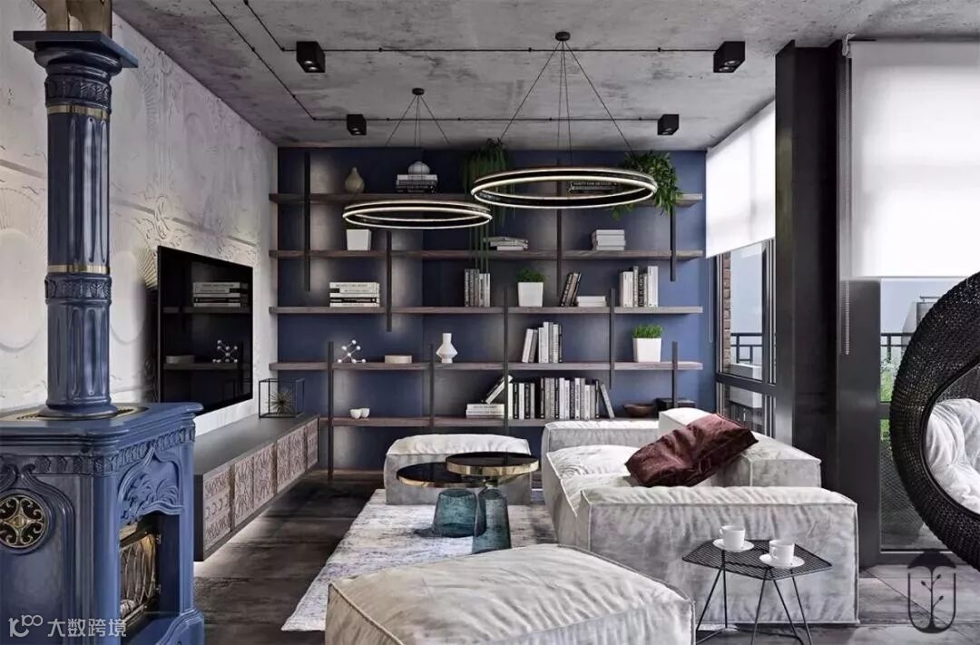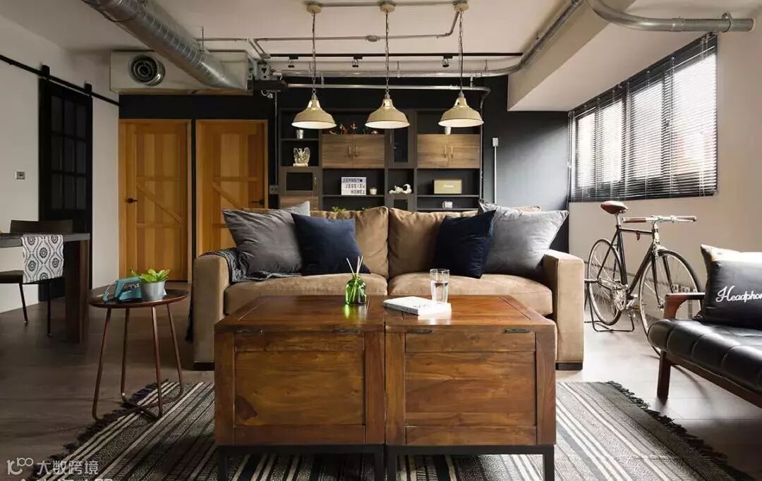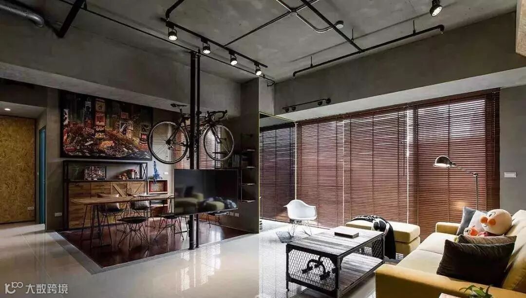 在工业风设计中,就常利用各种暴露管线、横梁、空调设备的顶面,打造复古空间。这些纵横交错的线条大多粗犷不羁,赋予了空间独特的气质和灵魂。