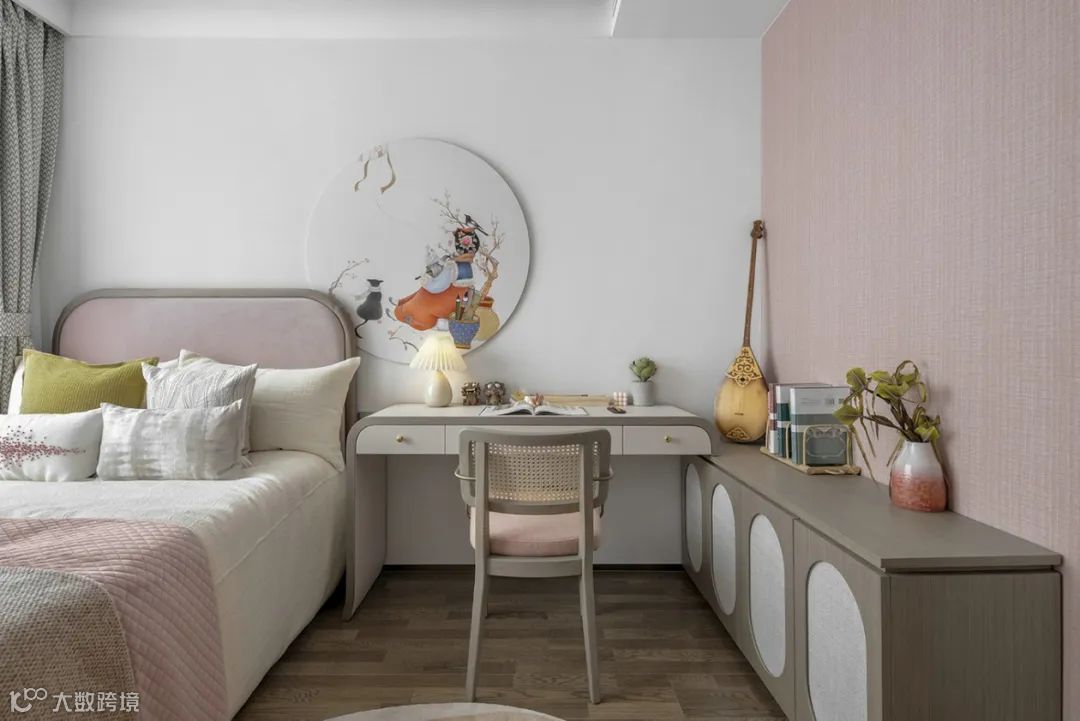 女儿房透露着东方女性的柔德,同时得到充满民俗意趣的小摆件的加持,彰显着家族的教养传承。