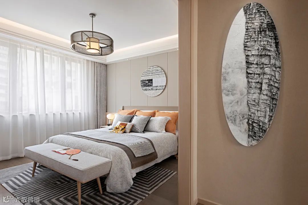 长辈房并不“老气横秋”,朴拙的基调在线条的规整下生出别具一格的艺术感;“上善若水任方圆”中式美学里图形的含蓄和韵味被我们放大,糅合隐现生活的温度。