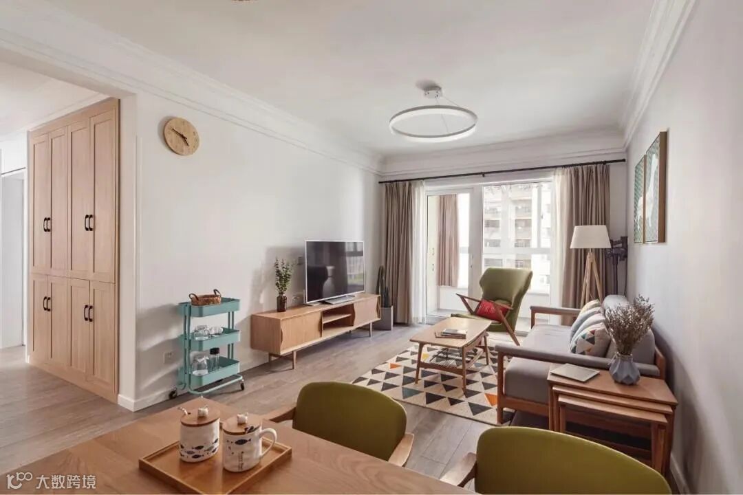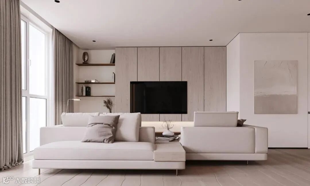 另外一些电视墙旁边有房门的情况,也可以通过木饰面+隐形门的设计,保持一个宽大简洁的电视墙设计。
