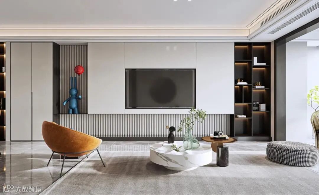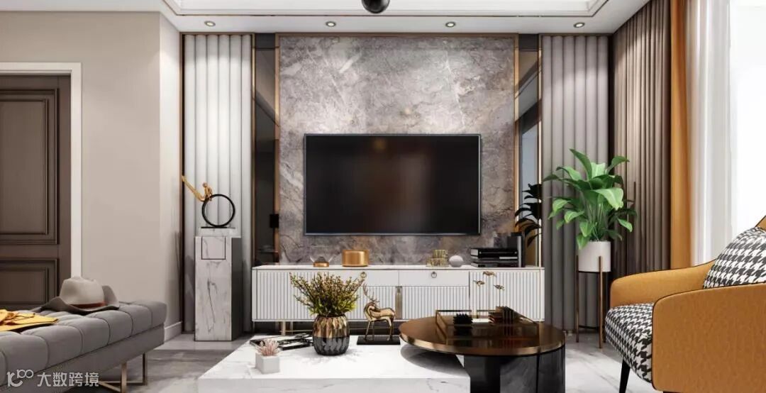 大理石在现代风的装修中,是一种非常华丽优雅的设计元素,把它铺贴在电视墙上,带来的效果也是非常的高级华丽,可以保持简洁优雅的基础,带来一个大方高级的客厅氛围感。