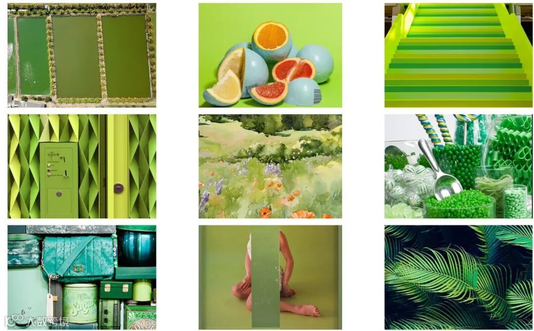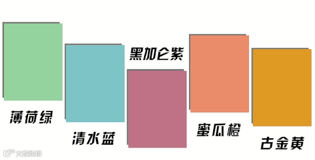 绿:浅绿、蓝绿、云杉绿、深蓝绿