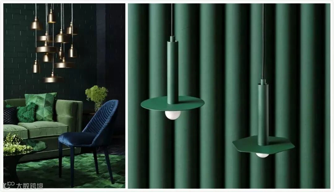 下面是深一点的云杉绿,它里面其实是加入了蓝色,这种颜色会经常被用到产品上面,例如,下图中的灯具。