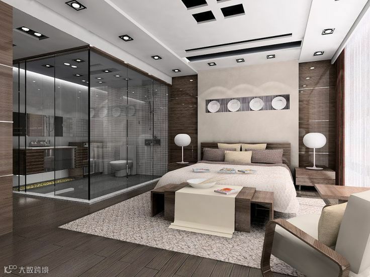 由外到内地按照主卧床、衣帽间、卫生间进行一体化布置,空间的开放感并没有得到改变,布置方式也非常简单。