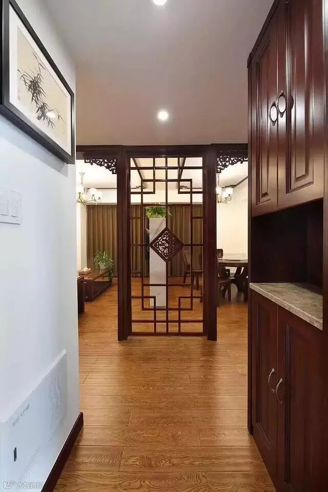 在桌子上多放些中式饰品,墙上可以挂装饰画等等,这些能让人一眼便感受得到,整个家的中式氛围。