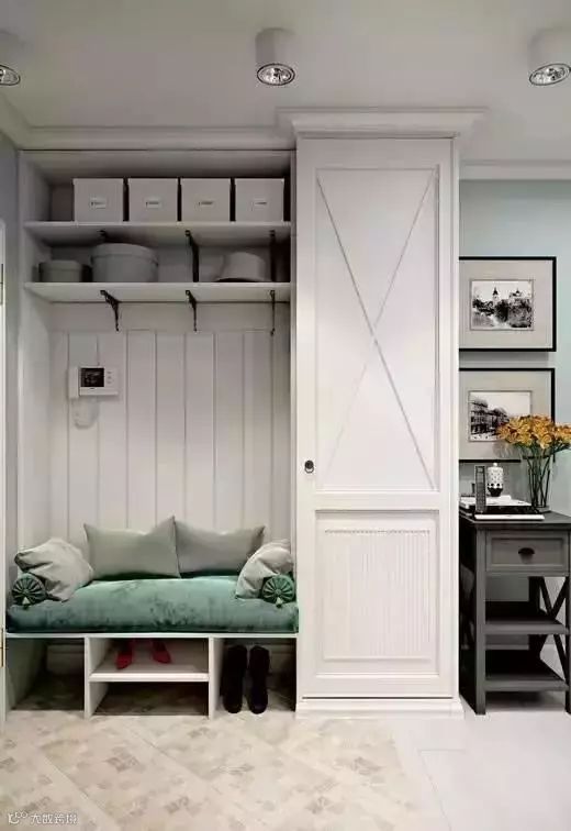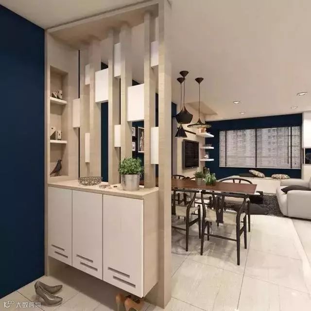 从实用角度来说,把屏风与收纳柜组合起来设计,既可以做隔断美化,又能作为收纳储物用,非常的方便实用。