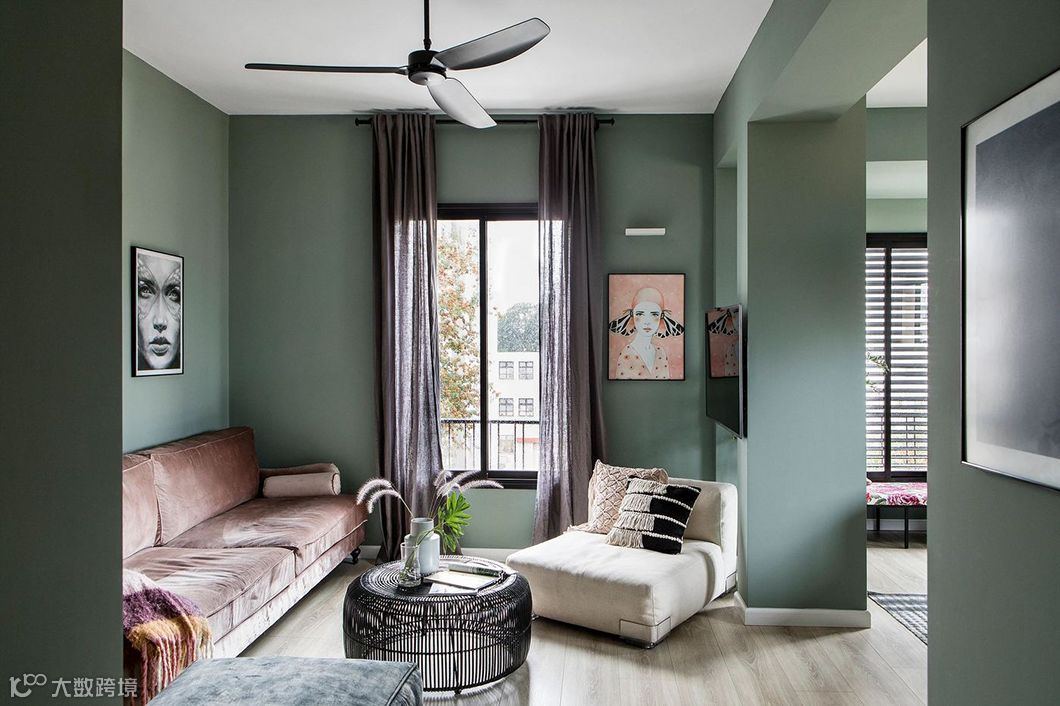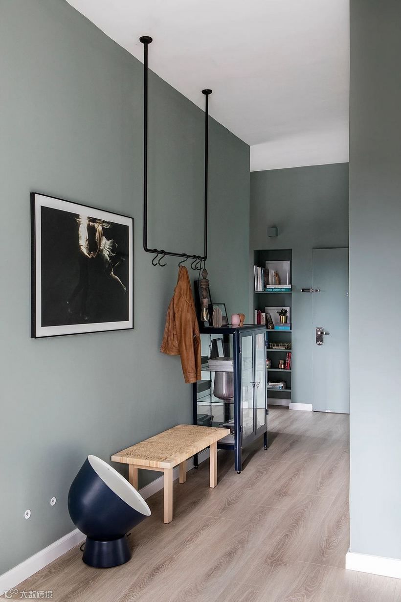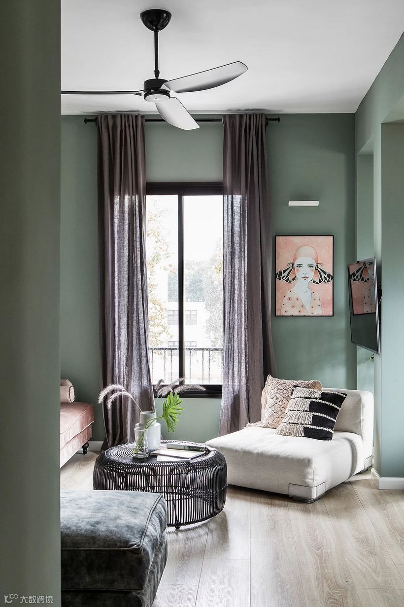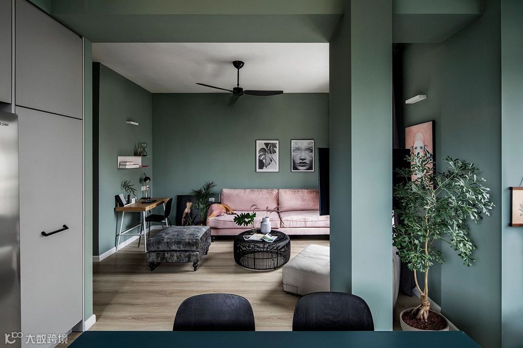 宛若蒙上一层白灰的灰绿调,带给室内犹如冬日般柔和静谧感受,在日光映照之下,呈现