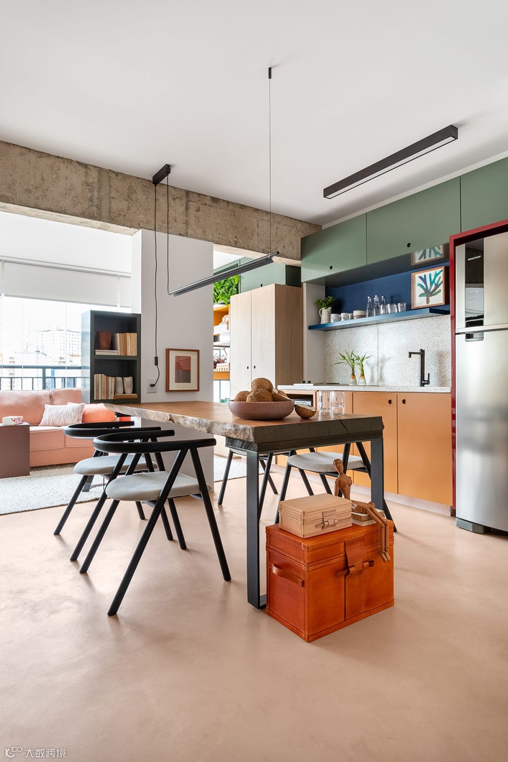 加入色彩喜好,让家更贴近自己的模样,正是由设计事务所Renato Mendonça Arquitetura经手的单身宅核心理念,团队特意从屋主喜爱的艺术画作汲取色彩灵感,并巧妙划分格局,捏塑开放与独立并存的视野。