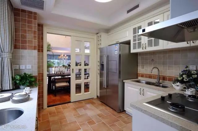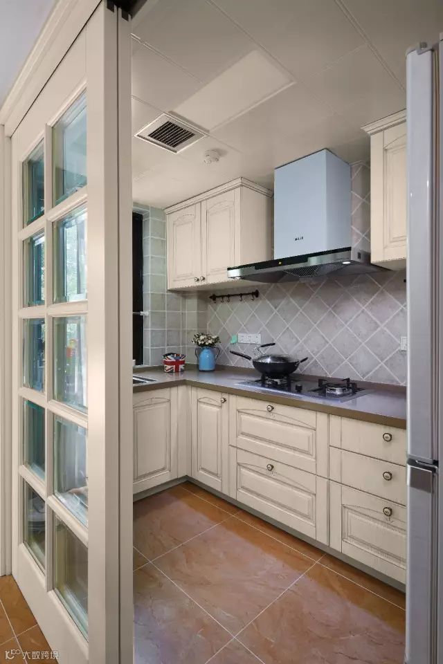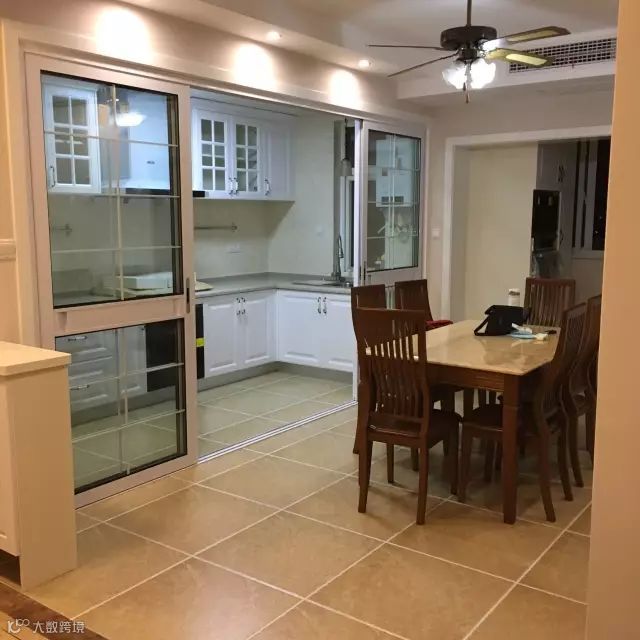 25、厨房与餐厅的地砖颜色保持一致,在打开厨房推拉门后,整个空间都感觉好宽敞大方;