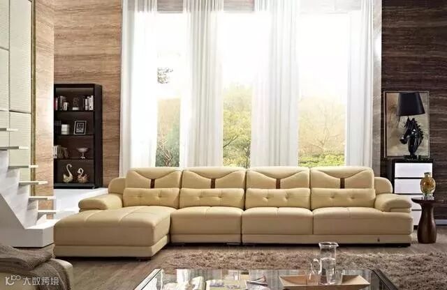沙发和窗帘,一个作为主色调,另一个作为背景色调的组合,也是常见的。比如米色的沙发搭配明黄色的窗帘。