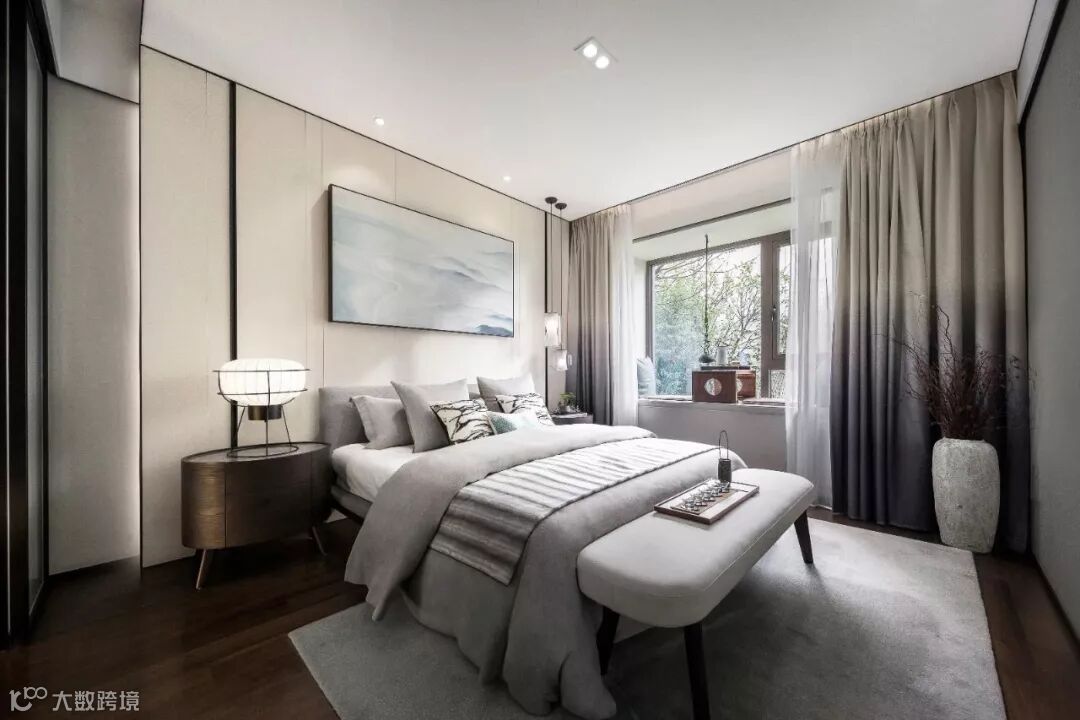 在轻奢风格中,设计师往往采用经典的黑白灰、暖调奶咖色、米杏色与原木色,来呈现优雅大气的空间格调,在视觉上取得平衡与统一。
