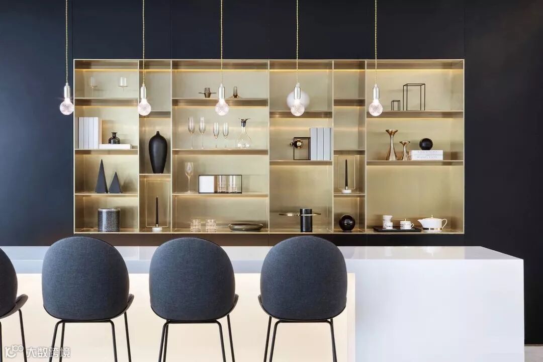 它的奢华气质不依附于华丽抢眼的装饰之上,而是通过色彩和材质本身的奢华质感,以及设计师对于每一个细节上的用心考究,不着痕迹地透露出了主人对于高品质生活的追求。
