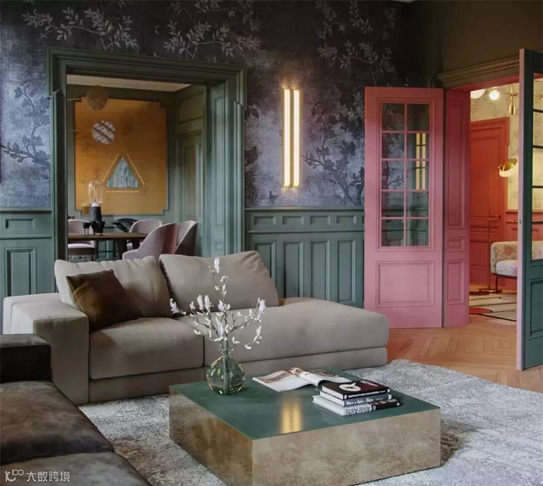 墙裙有一种天然的复古情怀,和整墙板不同的是,常见的半高墙板底部落地,上面会在到顶之间的位置留出空白,以腰线收边,空白处以其他装饰材料完成装饰。墙裙一词形象的体现了半高墙板的特点--就好像给墙体穿上了裙子一样。墙裙一般用在公共区域,比如走廊、楼梯等部位。