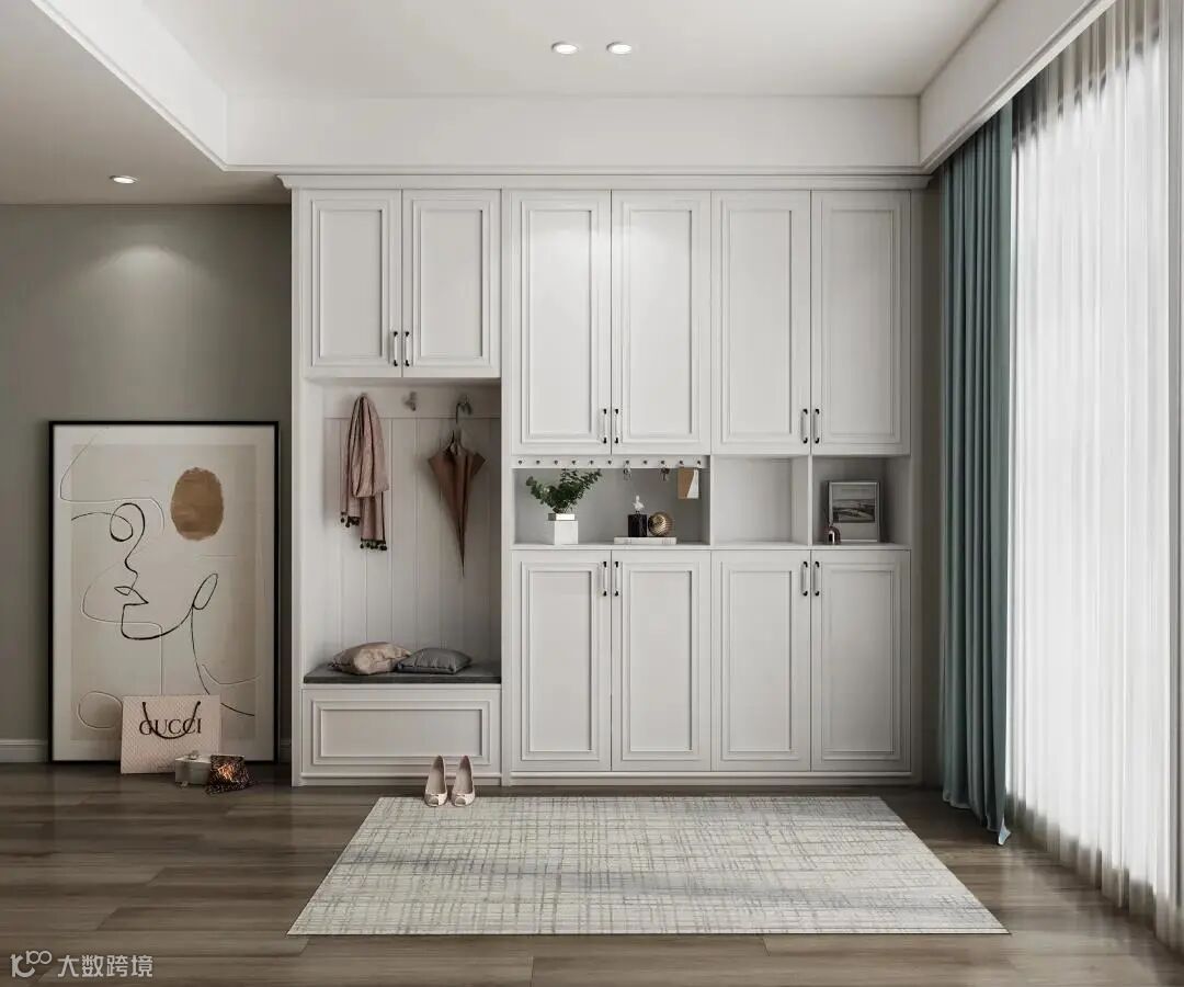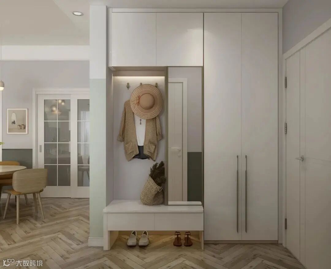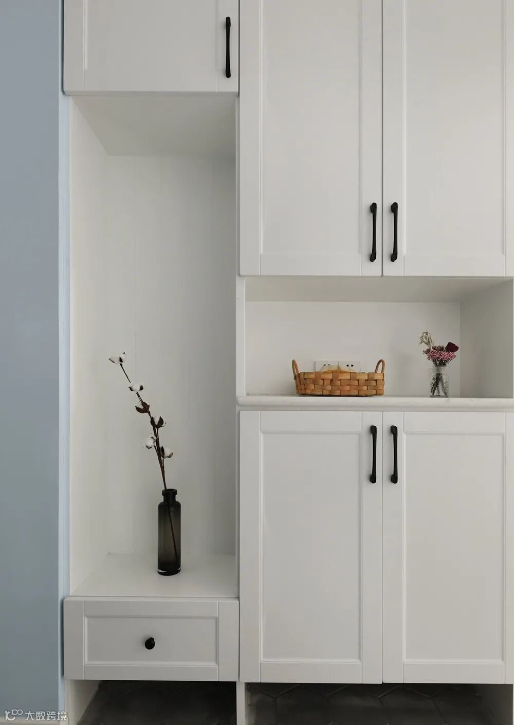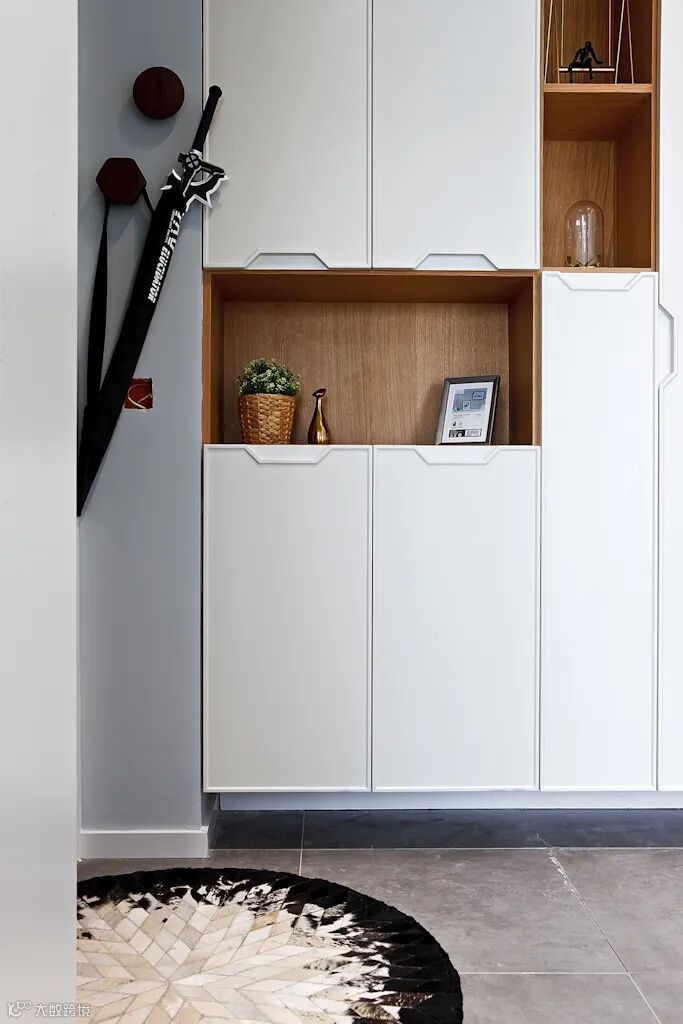 ④顶天立地玄关柜中部要留空,方便放置钥匙、包包、口罩等小物件。