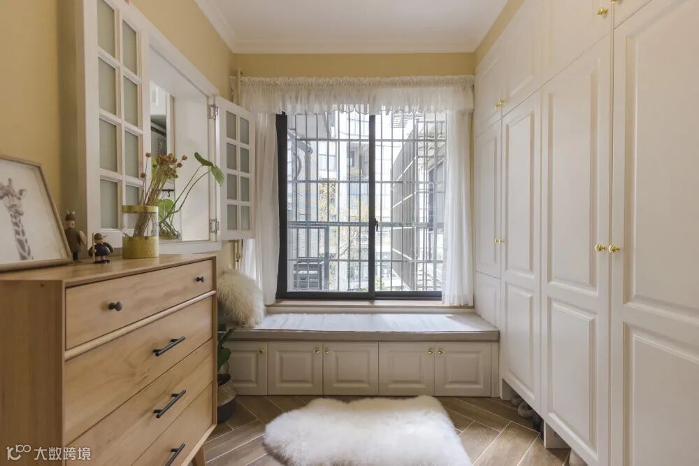 ①使用大面积白柜当墙,减轻柜子的体量感。