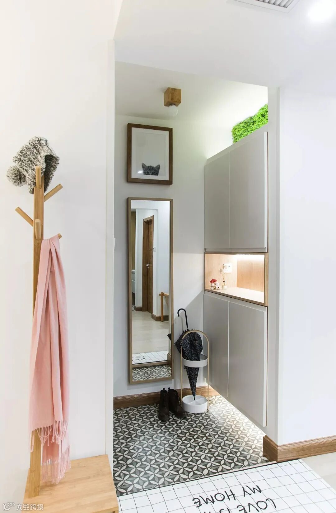 ②无通顶玄关柜的,直接在墙面装上艺术挂钩,挂衣服包包,也很到位。