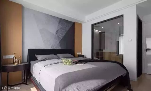 如果说客厅电视背景墙是个人审美的体现,那卧室背景墙则可以透露情趣。兔菇凉觉得,在卧室背景墙上挂结婚照什么的,实在是太out了。那如何将时尚元素和背景墙结合呢?看看下面的效果图就够了。