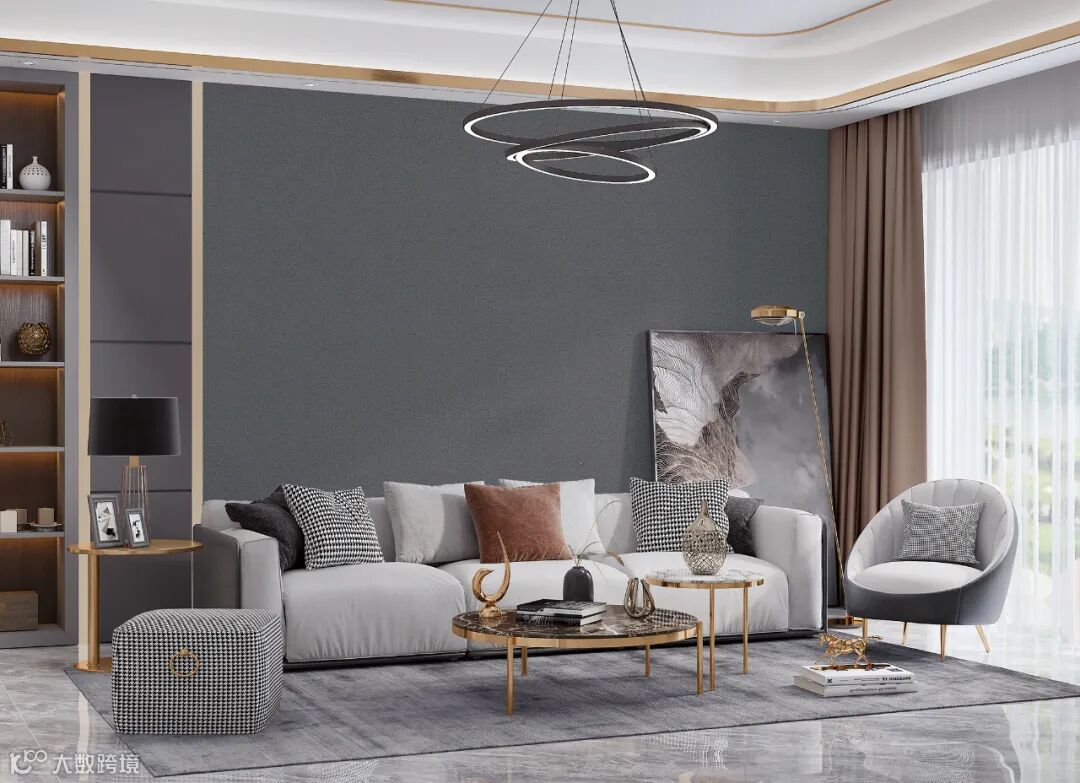 以50%灰为空间的主色调,经典而内敛。在突出其他装饰的同时,自身的气质也没有减弱,营造出一种高雅、舒适的室内氛围。