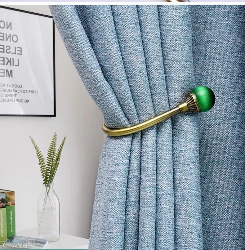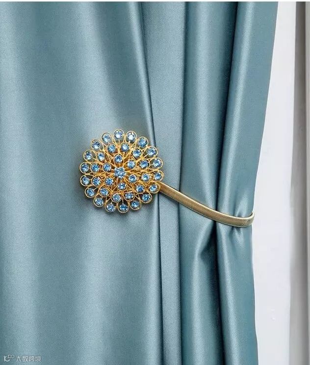 带有一些黄铜质感的艺术挂钩,也能恰到好处地给轻奢窗帘增添姿色。