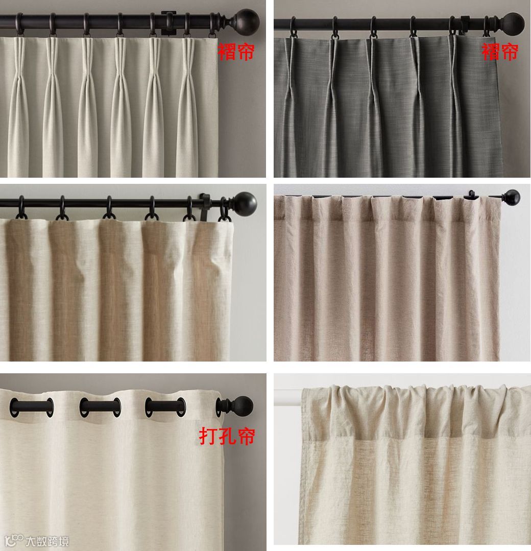 选择罗马杆,窗帘可以选褶帘或打孔帘;选择轨道,只能做褶帘。