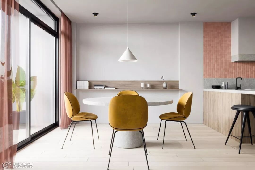 如果墙面颜色不太喜欢,也可以根据空间主体家具、饰品的颜色选取,比如沙发、挂画、抱枕、餐桌、床品等,但色调的深浅一定要有所区分。