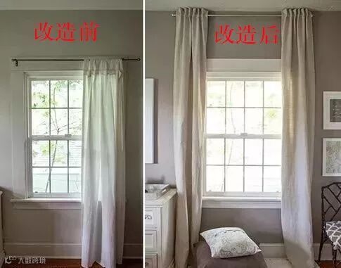 但是安装罗马杆,建议把窗帘杆抬高,从天花板一路垂到地板的长窗帘视觉上更美观,也会给人一种你家很高、很大气的错觉。