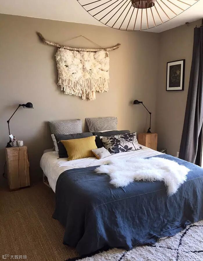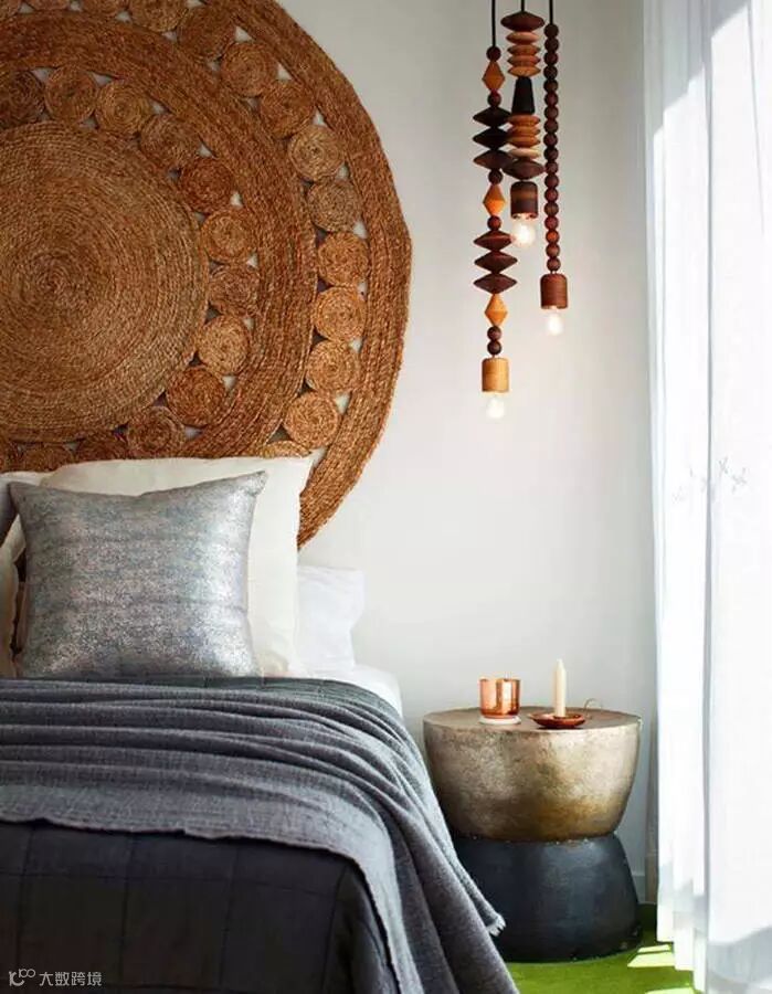 您习惯在走廊上看到的黄麻地毯很可能会迁移到卧室的墙上。这样的原始装饰将为房间增添舒适感。一个很好的方式来强调床头。
