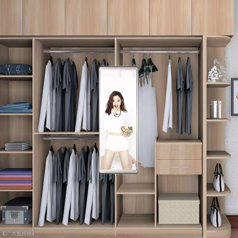 穿好衣服后照照镜子也是美美的,那么可以在衣柜里放一个折叠的镜子,需要用的时候可以拉出来。