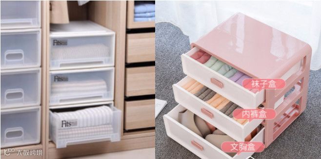 抽屉式收纳盒,网上买很便宜,方便实用,可以收纳内衣内裤袜子等私密的衣物,跟其它衣物分开,保证干净整洁。