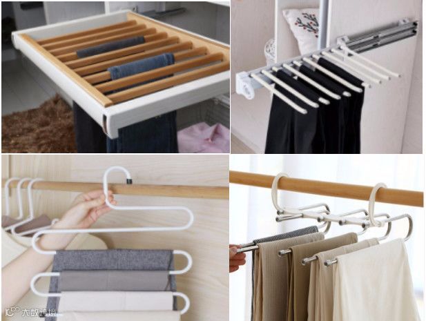 尽量选择横向挂的伸缩裤架,可以一个格子里挂两排以上,这样挂的裤子数量可以翻一倍,另外推荐推荐一个超好用的伸缩多功能多层裤架,这个裤架可以展开平挂也可以折叠起来五条裤子挂一个架子,这样的话一个格子里就可以挂到60多条裤子,非常的好用,节省了大量的空间,这样裤子不用折叠起来而有折痕了。