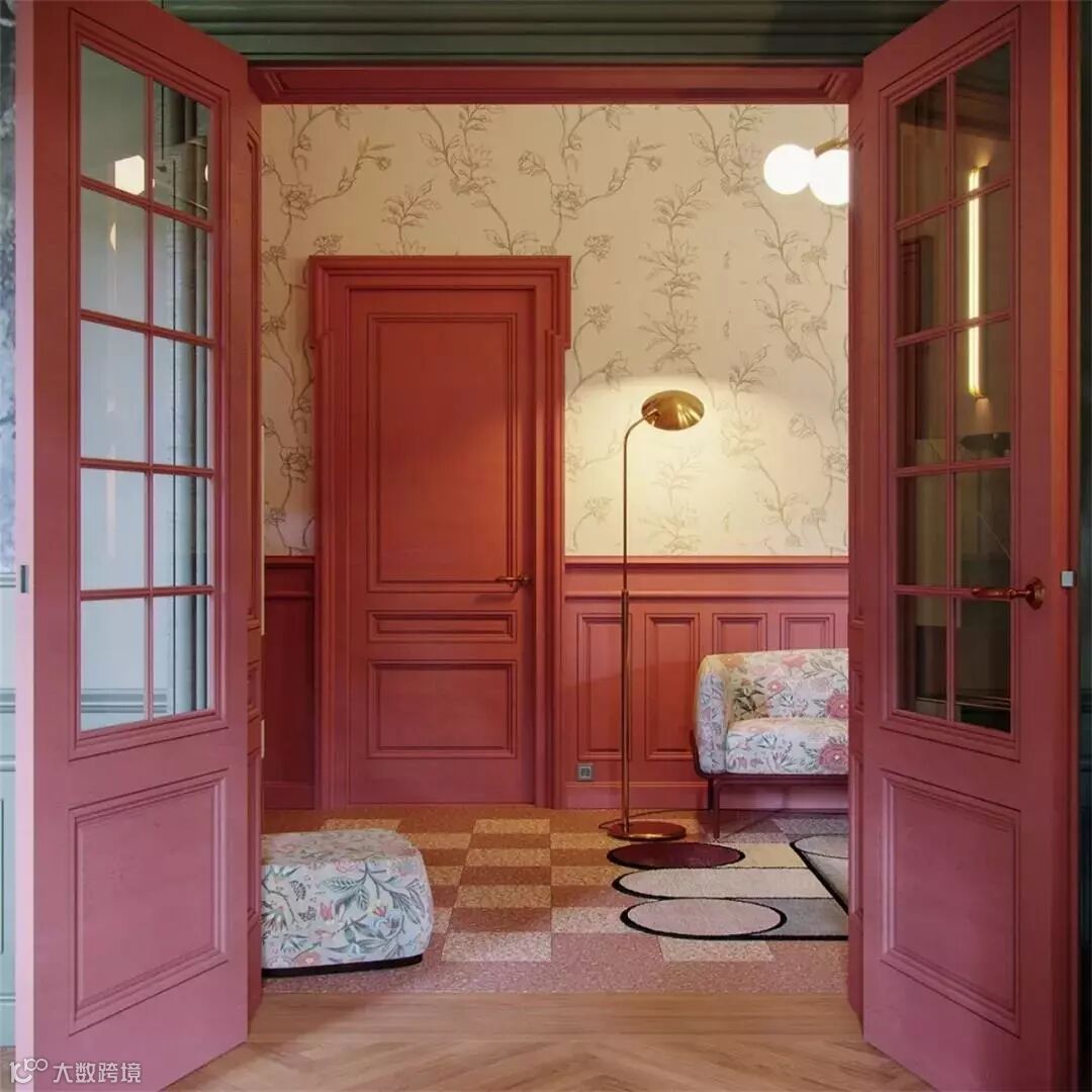墙裙有一种天然的复古情怀,和整墙板不同的是,常见的半高墙板底部落地,上面会在到顶之间的位置留出空白,以腰线收边,空白处以其他装饰材料完成装饰。墙裙一词形象的体现了半高墙板的特点--就好像给墙体穿上了裙子一样。墙裙一般用在公共区域,比如走廊、楼梯等部位。