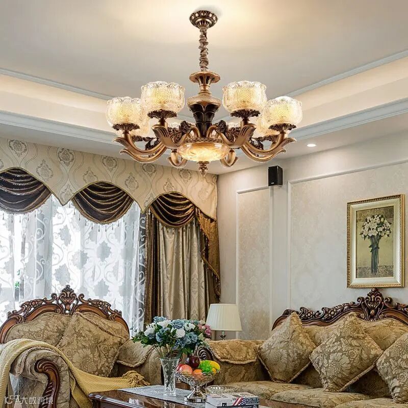 多头吊灯(基础照明)+明装式筒灯(装饰照明)+台灯/落地灯(重点照明)