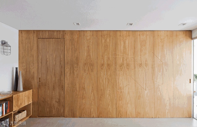 看一下这张动图就懂了,把卧室和客厅给完全分开,不打开门的时候,谁能发现后面还隐藏着一个空间呢~