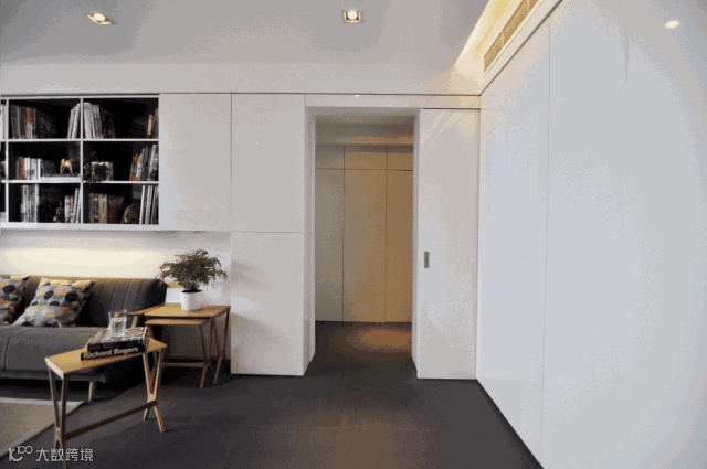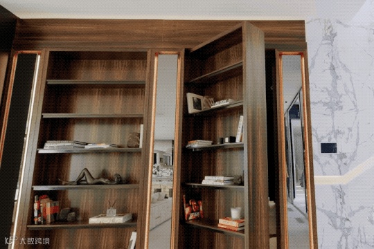 旋转式隐形门占用的空间较前两者更大,一般用于较大的空间。它兼顾了门、隔断和造型的三重要求。视觉效果和趣味性也更胜一筹。