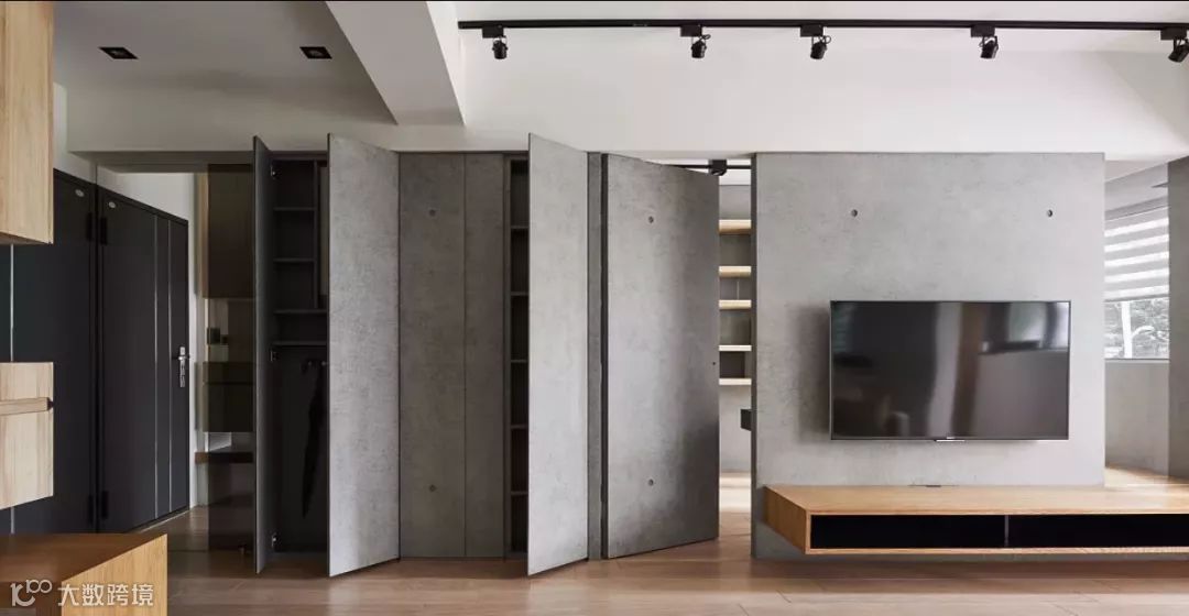 折叠式隐形门的整体性非常强,打开后可以一推到底,造型美观又节省空间。