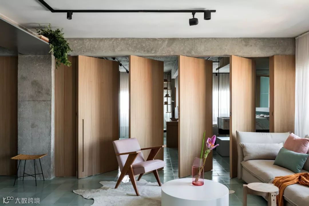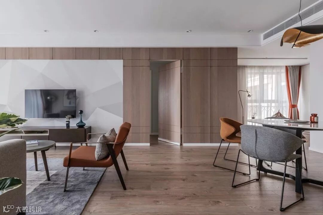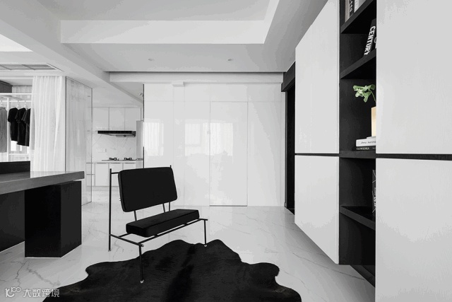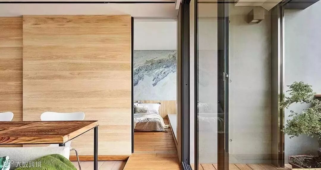 轻盈的推拉式隐形门设计,不但可以划分居室空间,而且尽可能的保留了空间的开阔感,因而常常用在小户型设计中。