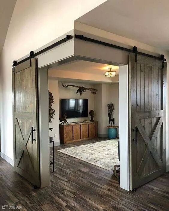 这种是将轨道隐藏于非承重墙墙体中,打开时候,轨道门藏于墙体中,关闭时候,再拉开即可。需要先在墙体里进行开槽;然后安装轨道和门扇。