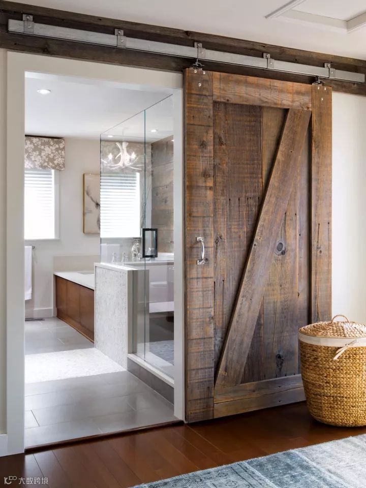 相较于一般的嵌入式推拉门来说,谷仓门最鲜明的特点就是将滑轨和门板装在外面,更多的体现一种美式乡村的风味,装饰感非常强,又因超高颜值以及满满的复古气息受到了一众年轻人的热捧。门业视界,你的朋友。