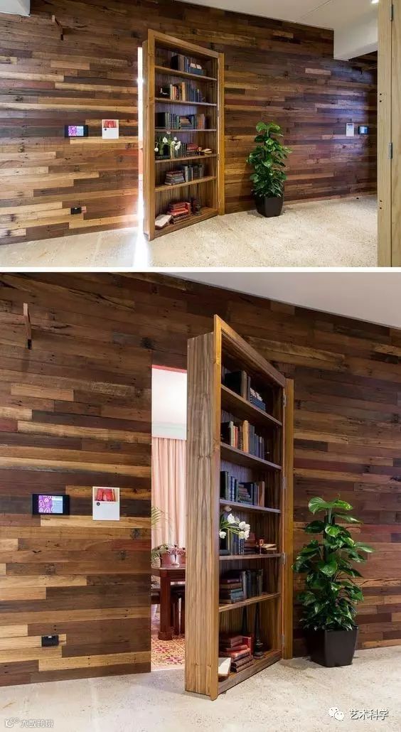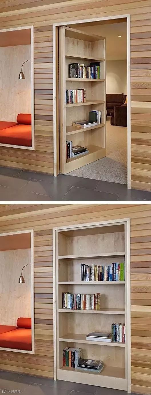 隐藏门表面上看起来像一堵墙,没有拉手、也没有门锁,甚至可以与家具融为一体,但实际上却可以开启一个“秘密通道”,起到分隔私密与公共空间的作用,又能让家居风格保持和谐、统一的视觉效果。