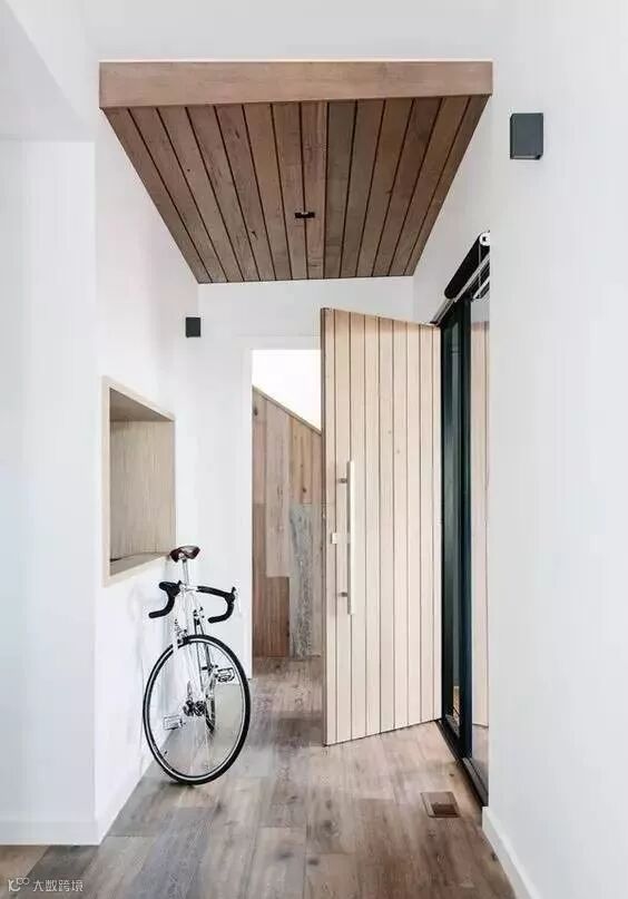 生活中,普普通通的木质平开门太常见了,如果不满足于单调乏味的设计样式,也可以做成半扇的,条状的,或者干脆保留它的天然质感,让原始的色泽、纹理自然显露,再搭配造型简约的金属把手,打造出与众不同的感觉。